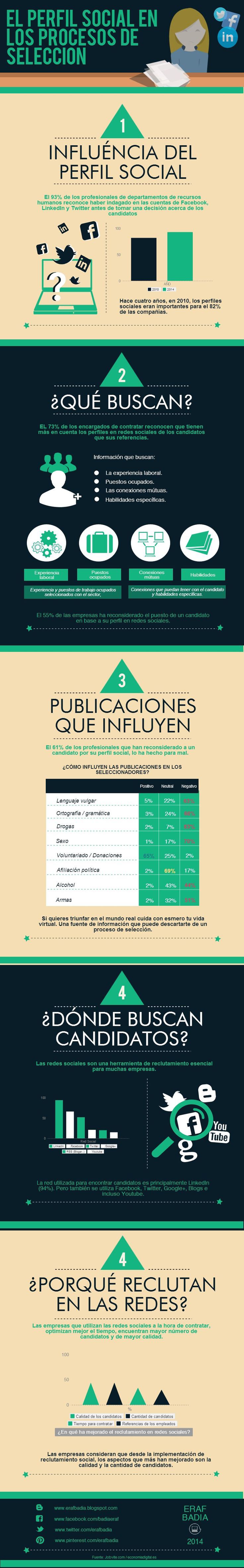 Hoy os traemos una infogafía en la que se describe de forma muy visual, la importancia que tienen las redes sociales de los candidatos para los recursos de los departamentos de recursos humanos.