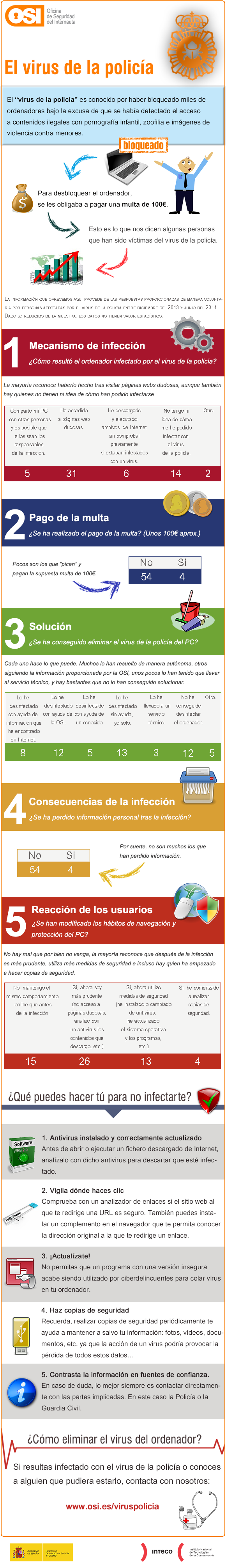 En estos días que el virus de la policía vuelve a estar más activo que nunca, os traemos una infografía realizada por la Oficina de Seguridad del Internauta (OSI).