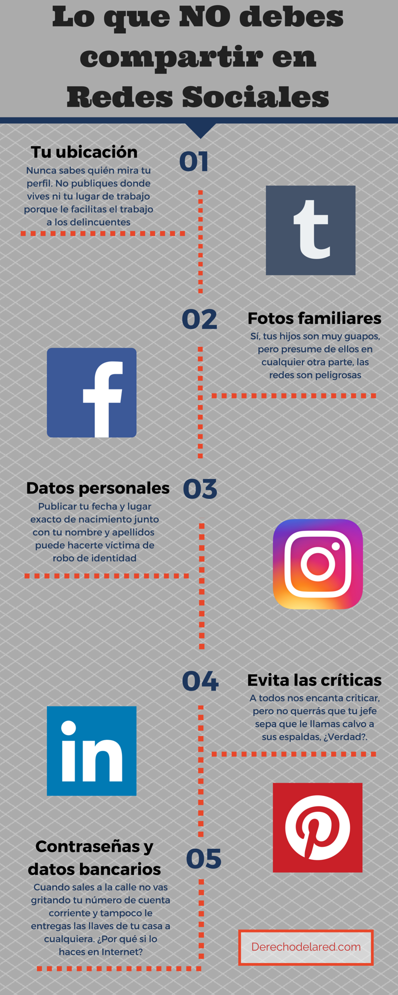 Por ello, debemos tener claro que podemos y no podemos publicar en las redes sociales y, para ello, os traemos nuestra segunda infografía (la primera puedes consultarla aquí). Además, piensa que 8/10 empresas a día de hoy revisan tu perfil en Internet cuando presentas tu candidatura a una empresa.
