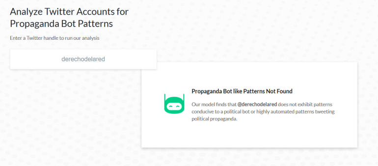 Se trata de una herramienta que analiza cuentas de Twitter para detectar conductas de bot. En otras palabras, nos puede determinar -a grandes rasgos- si detrás de la cuenta que estamos leyendo hay, o no, una persona.