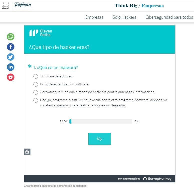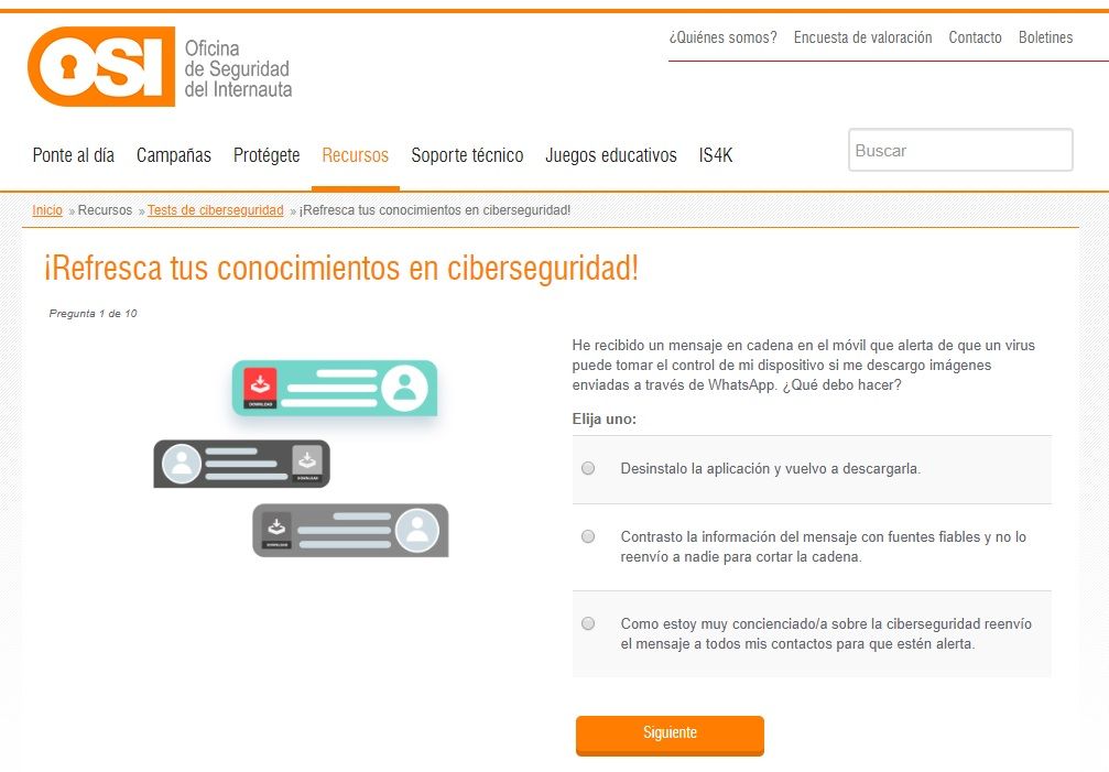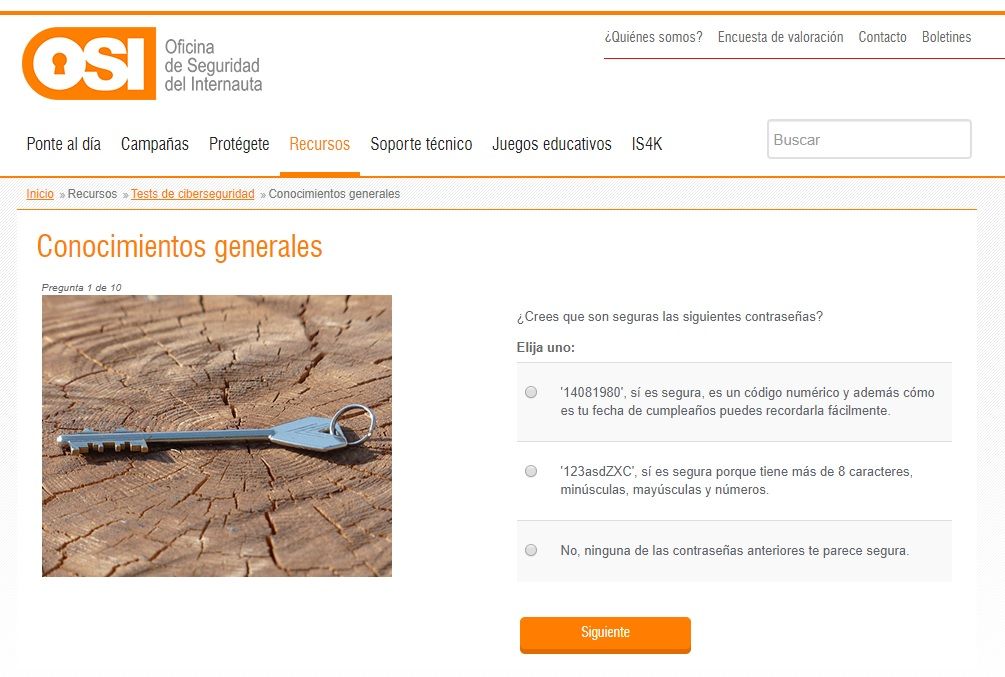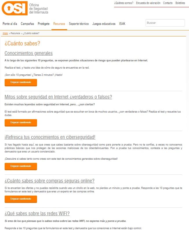 1. Tests de conocimientos. Con el objetivo de autoevaluarnos para averiguar cuál es nuestro nivel de conocimiento en ciberseguridad podemos usar algunas simples herramientas muy útiles para ello.