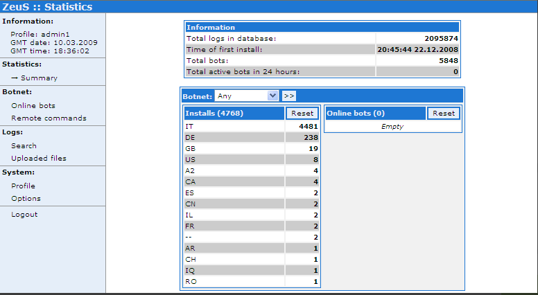 En este primer artículo sobre redes zombis vamos a hablar de ZeuS, una de las botnets con más capacidad de computación a la hora de infección. Zbot, como también se la conocía, disponía de uno de los mayores conjuntos aplicativos de crimeware que permitía la administración de los equipos infectados vía web a través de una sencilla e intuitiva interfaz.
