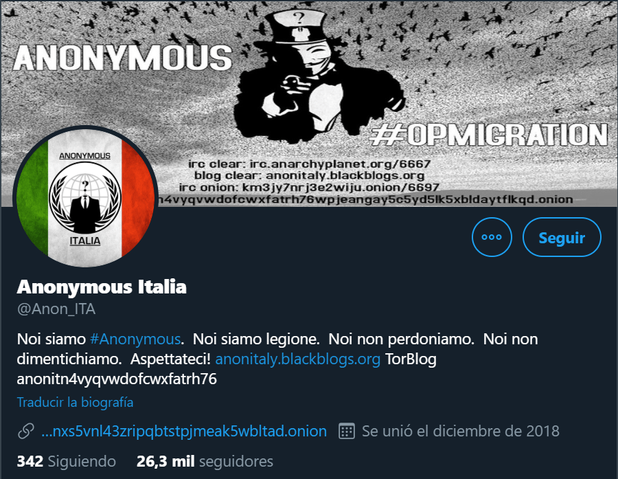 En Italia podemos encontrar, pasta, pizza y además varios actores principales. Uno de ellos es Anonymous Italia.
