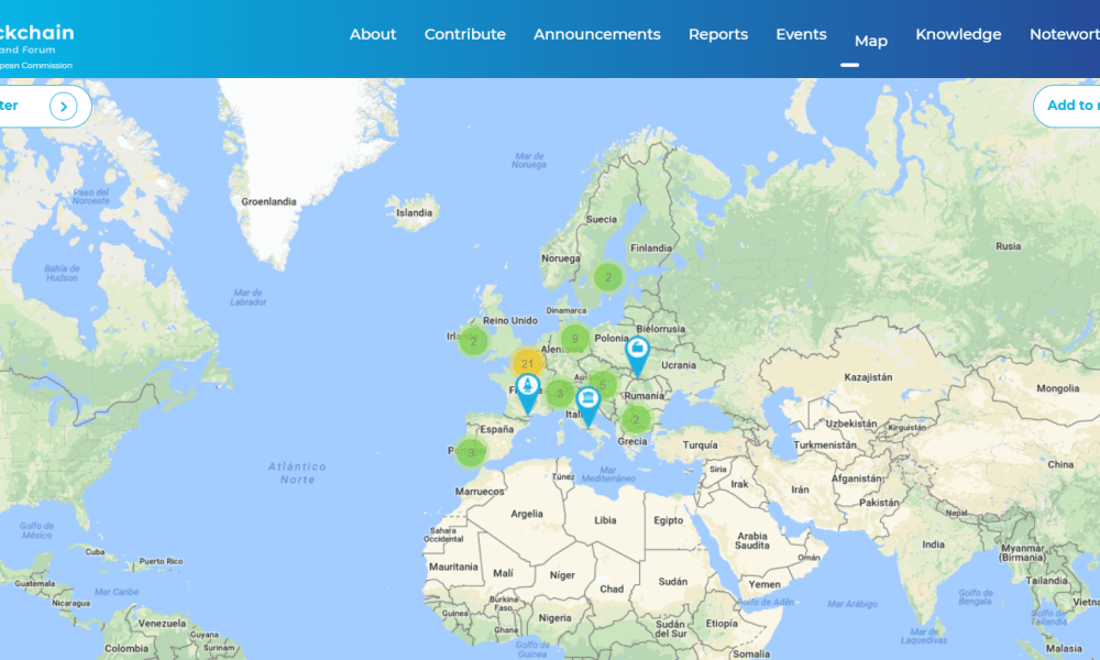 Mapa de iniciativas en materia de Blockchain en la UE.