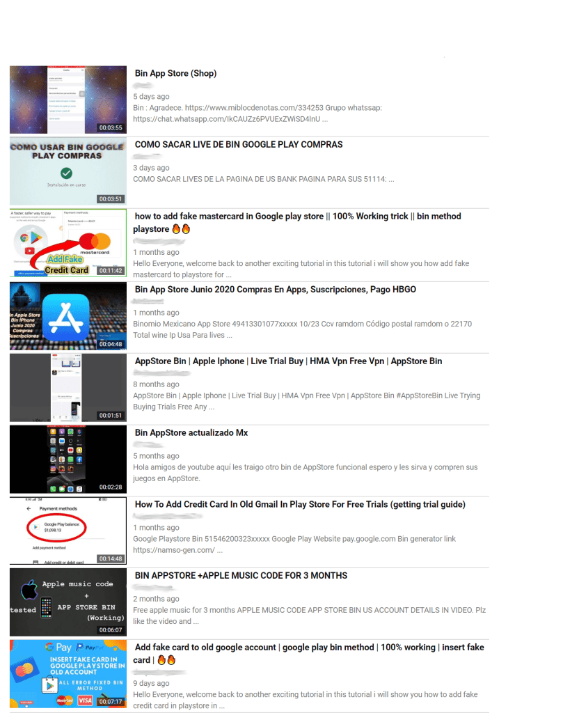 Aquí podemos ver otros vídeos que se siguen subiendo actualmente a día de hoy por actores especializados en carding.