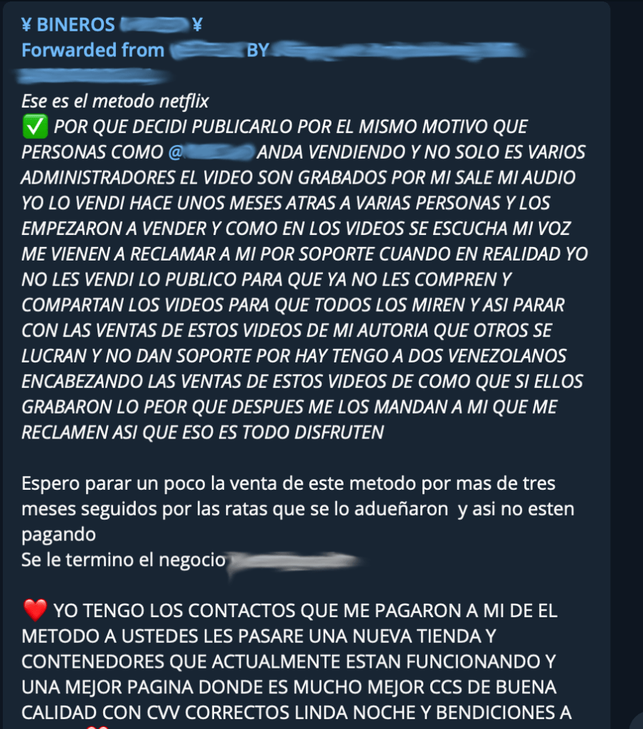 Durante un tiempo, una obsesión me recorría el cuerpo, buscar canales y grupos de Telegram nuevos con los que poder conseguir información de primera mano. Para ello, pasé mucho tiempo trasteando, investigando, buscando… hasta que comenzamos a encontrarnos con los canales de carding. Estos canales, no son nada nuevo, ya lo vimos en el artículo de nuestro colaborador Edu. Siempre estuvieron ahí, pero… si nos fijábamos en los más importantes, en los más destacados, siempre encontrábamos un patrón común, un usuario que era el centro de atención.