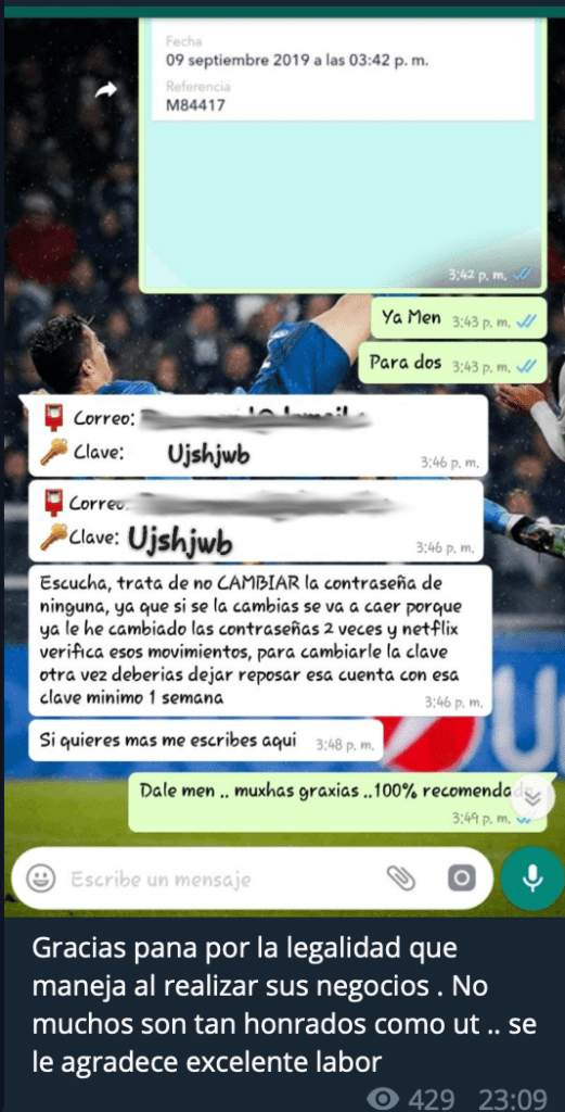 Como se puede apreciar en la imagen, aparecen otros usuarios parecidos a este que realizan contenido parecido, ventas de cuentas de Netflix es una de las actividades más comunes junto con las de Spotify, HBO… cuando ofrecen estas cuentas proporcionan una serie de instrucciones y manuales de uso para no ser detectados, pero esto lo veremos más adelante.