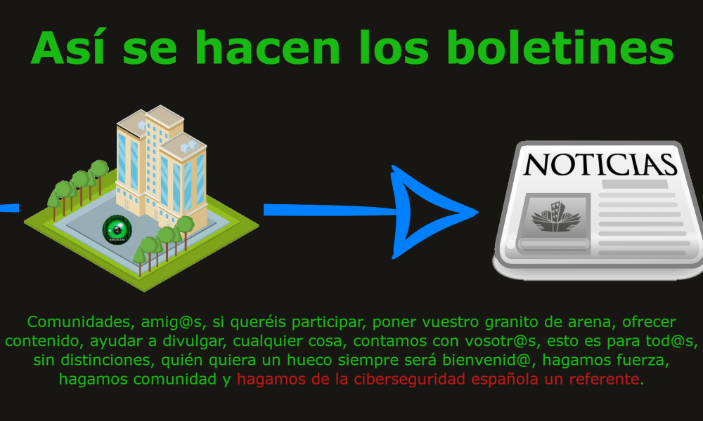 Comunidades, amig@s, si queréis participar, poner vuestro granito de arena, ofrecer contenido, ayudar a divulgar, cualquier cosa, contamos con vosotr@s, esto es para tod@s, sin distinciones, quién quiera un hueco siempre será bienvenid@, hagamos fuerza, hagamos comunidad y hagamos de la ciberseguridad española un referente.