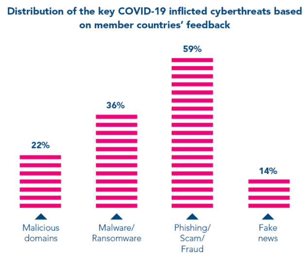 Según el informe de Interpol, afirmó Nevado, las ciberamenazas más destacadas o que más han proliferado en este periodo han sido las relacionadas con el ciberestafas masivas de phishing (o suplantación de identidad por correo electrónico, y sus derivadas o «hermanas gemelas» como el smishing -mediante mensajes SMS-, el vishing -mediante llamadas de voz y vídeo-, pero también por WhatsApp, Telegram y otros servicios de mensajería) que han sido complejas y han apelado a la ingeniería social, al factor humano, a la solidaridad y a temas relacionados con la pandemia, los ciberataques de ransomware o cibersecuestros de dispositivos e información, el robo de datos, la manipulación de la información mediante bulos y FakeNews, el minado de criptomonedas y el blanqueo usando criptomonedas. Con todo esto, Casimiro concluía con algo en lo que tod@s coincidieron: «no estábamos preparados«.