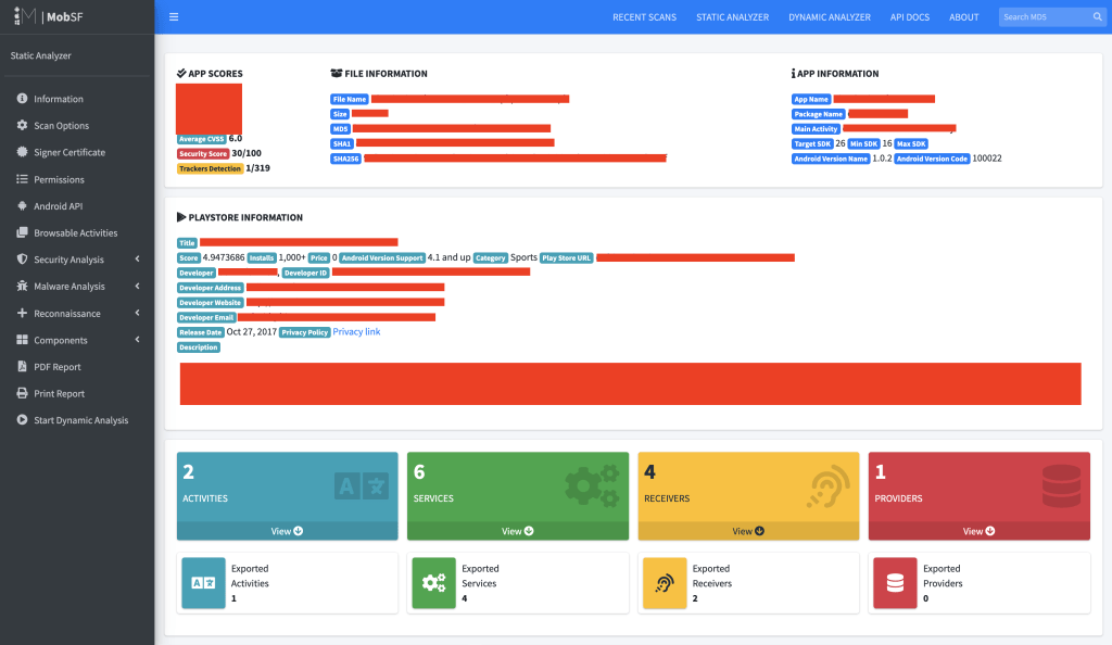 MOBSF o Mobile Security Framework es una herramienta open source fácil de instalar y con poco que envidiar a herramientas de pago. Nosotros, desde Derecho de la Red queremos comenzar una serie de artículos hablando de este tipo de herramientas poco a poco. Digamos que vuelven los #DomingosdeCacharreo.