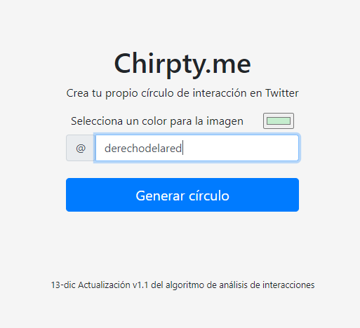 Esta opción pone nuestra privacidad en riesgo. Cuando llegamos a la página de inicio veremos una página en la que deberemos introducir nuestro nombre de usuario, pero la sorpresa viene después, una vez que le hacemos clic en «Generar círculo»