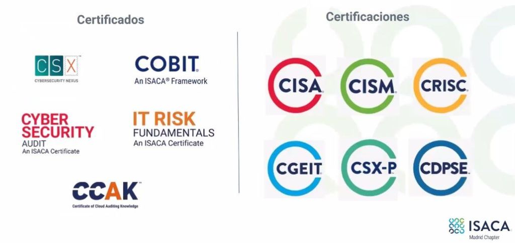 - CISA – Certified Information System Auditor (Certificación de Auditor de Sistemas de Información): https://engage.isaca.org/madridchapter/certificaciones/cisa