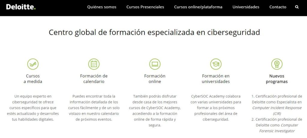 - Deloitte (DxD): https://www2.deloitte.com/es/es/pages/governance-risk-and-compliance/solutions/CyberSOC-Academy.html
