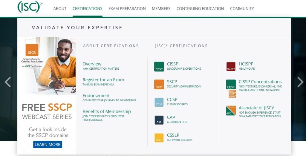 - (ISC)2:certificaciones profesionales de ciberseguridad: www.isc2.org
