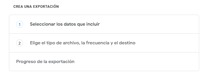 Una vez en Google Takeout, deberemos seguir dos pasos:
