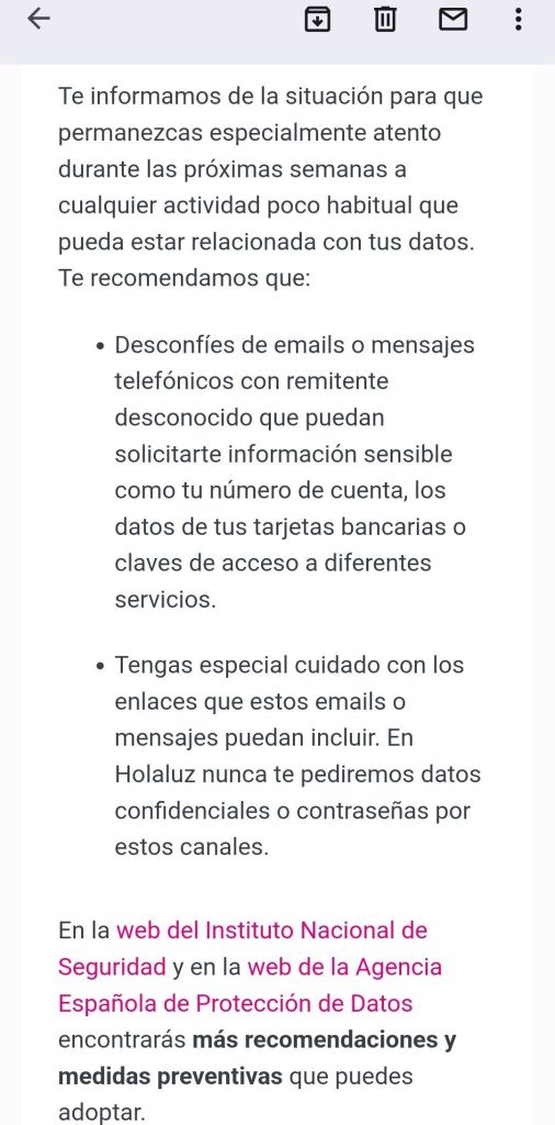 Hemos tenido acceso al comunicado que Holaluz ha enviado a los clientes afectados por la filtración de datos y los datos que se han visto comprometidos han sido los siguientes: