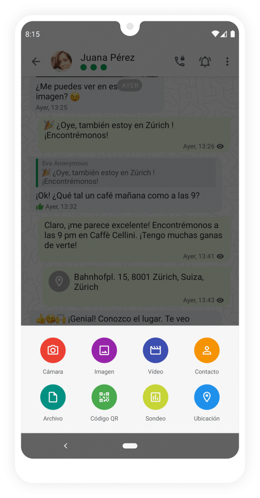 - Compartir fotos, vídeos, GIFs animados y ubicaciones