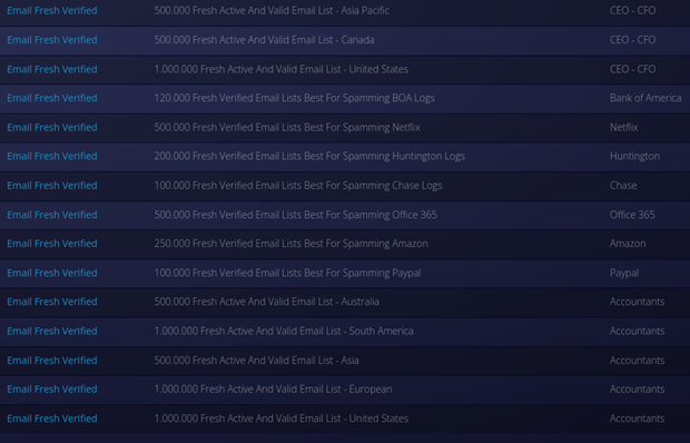 Lo mismo ocurre con lotes de credenciales capturadas en ataques a empresas de servicios, servicios financieros… El precio varía entre los 11 – 22 $.