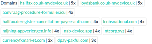 Y por el nombre de algunos dominios podemos ver cuáles han sido los objetivos de estos dominios (servicios bancarios, de inversión, de pago en línea…)