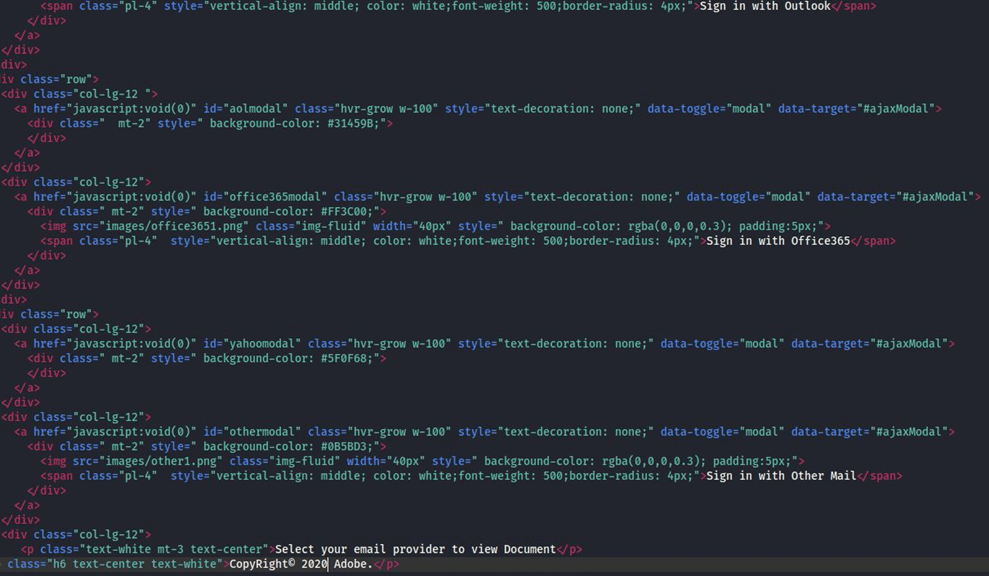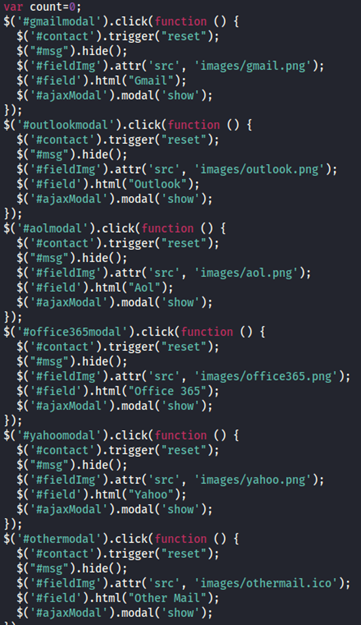 En esta parte del código es donde se carga, según la empresa de correo electrónica elegida, las imágenes para adaptar el formulario a dicha empresa y crear cierta sensación de confianza al usuario víctima.