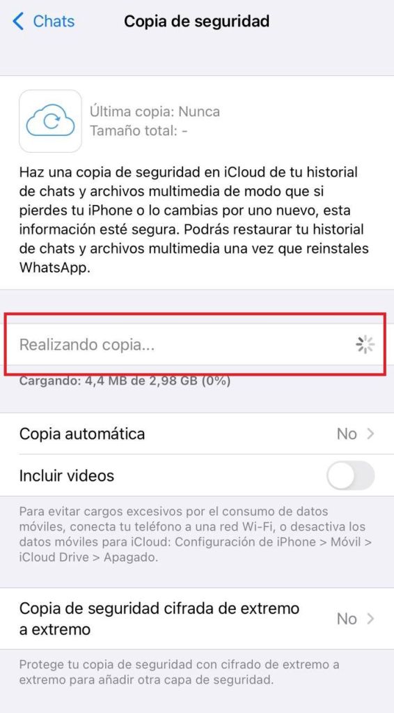 Ten en cuenta que las copias de seguridad se almacenan en la nube (iCloud para dispositivos iOS y Google Drive para Android), posteriormente puedes descargarlos y eliminar el volcado de los datos de la nube si así lo consideras.