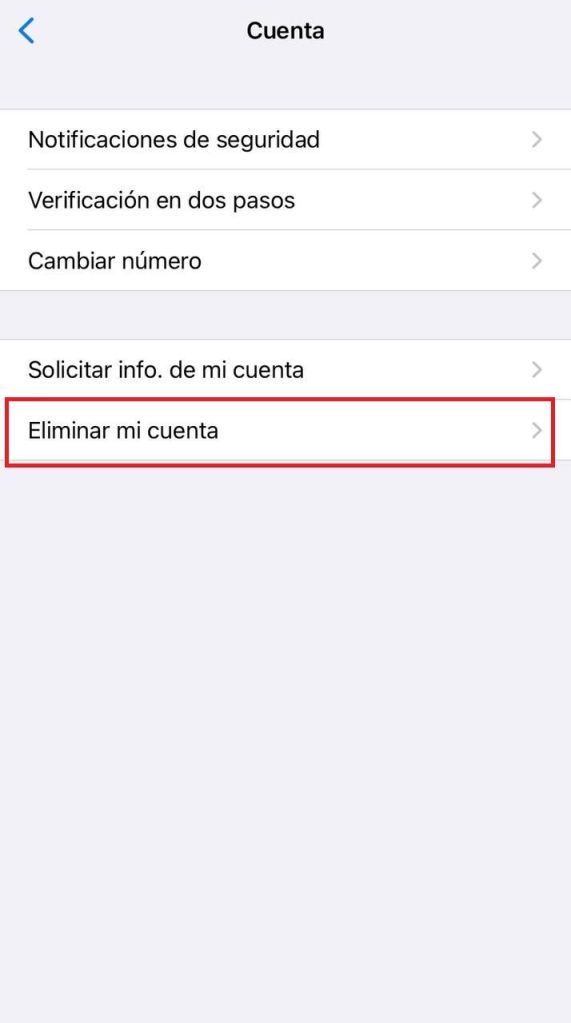 Paso 2: Eliminar tu cuenta de WhatsApp