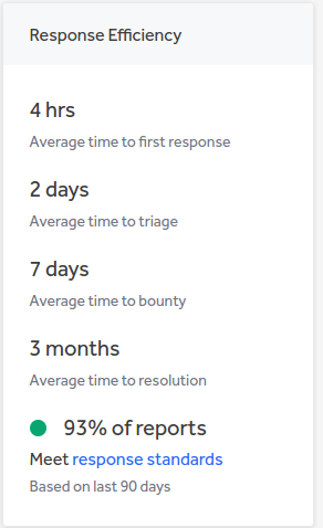- Estadísticas del programa: Métricas relativas a como gestiona la organización los reportes: cuantos reportes se han recibido, cuantas vulnerabilidades solucionadas, tiempo medio de respuesta al reporte, …etc.