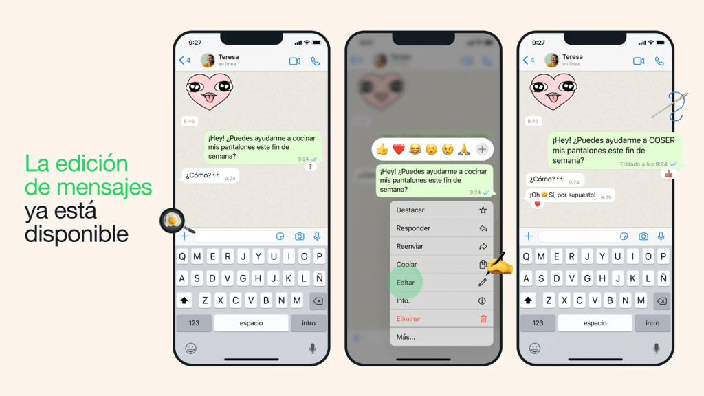 «Estamos encantados de proporcionarte un mayor control sobre tus chats. Ahora tienes la posibilidad de rectificar desde simples errores ortográficos hasta añadir información adicional a un mensaje. Simplemente, mantén pulsado el mensaje enviado y selecciona Editar en el menú», explica la compañía.