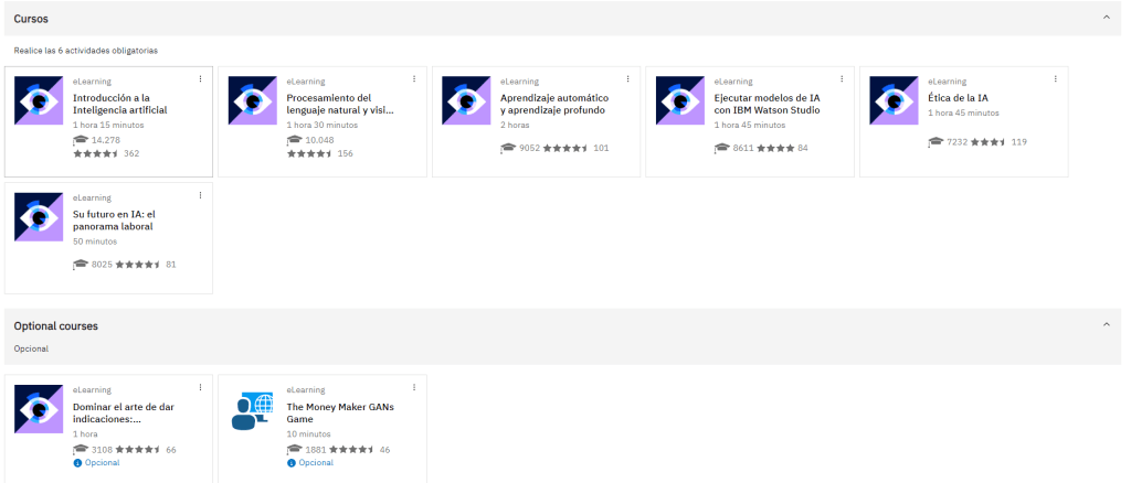 Además, una vez finalicemos el curso, se dispone de un certificado de IBM por haberlo realizado que luego podremos compartir en nuestro CV y en nuestras redes sociales.