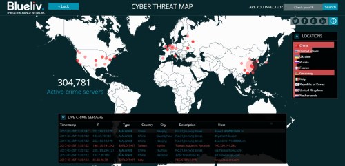 En este mapa se muestra en tiempo real la geolocalización de servidores de cibercrimen los cuales participan en actividades delictivas tales como el robo de credenciales, el robo de tarjetas de crédito o distribución de malware.