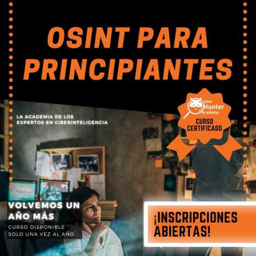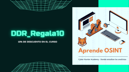 Con el código DDR_Regala10 tenéis un 10% de descuento para el Curso OSINT para principiantes de nuestros amigos de Cyber Hunter Academy.